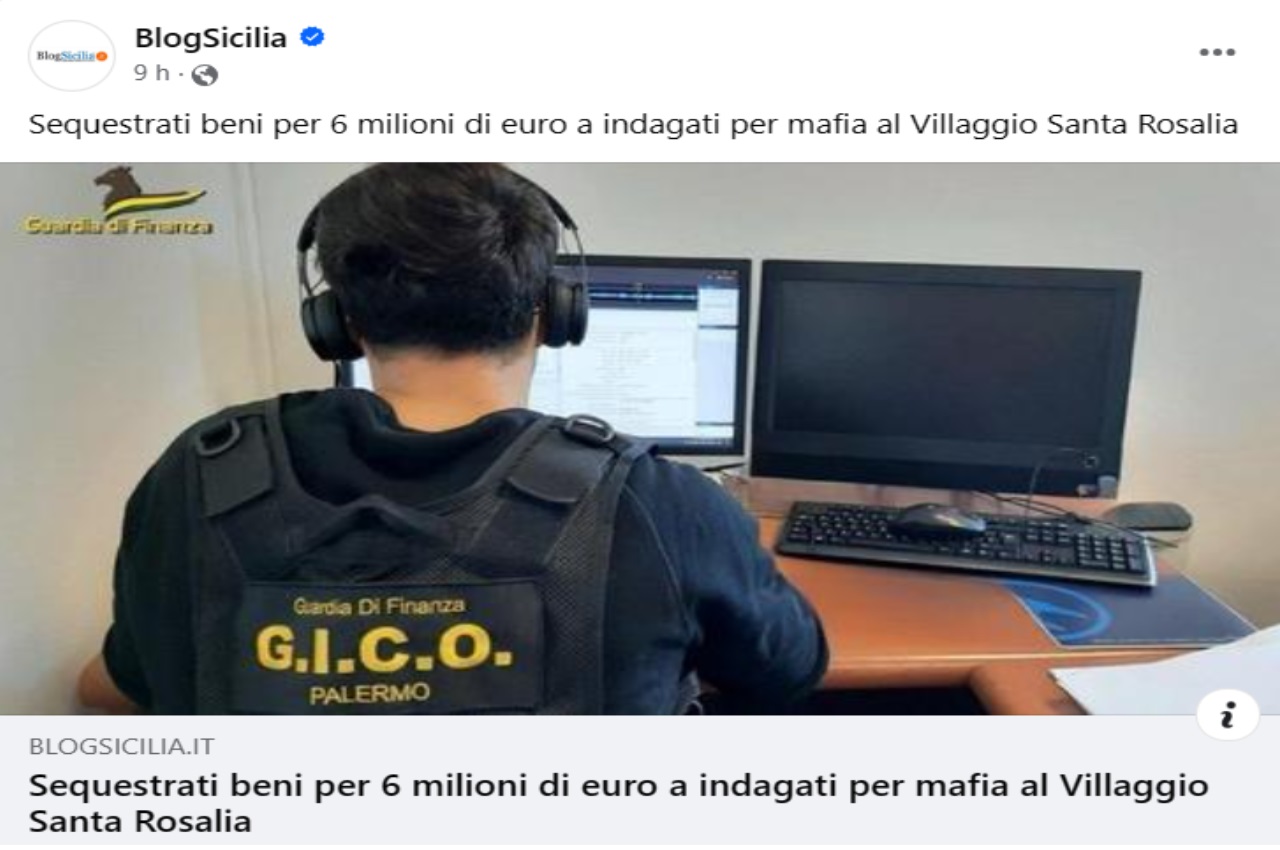 I finanzieri del comando provinciale di Palermo hanno dato esecuzione a un decreto di sequestro beni per 6 milioni di euro emesso dal gip del Tribunale di Sede… Claudio Bencivinni, su richiesta della Procura della Repubblica locale, nei confronti di 8 persone accusati di essere appartenenti alla famiglia mafiosa del Villaggio Santa Rosalia, che rientra nel mandamento di Pagliarelli, e indagati per traffico di sostanze stupefacenti e per trasferimento fraudolento di valori aggravato dalla finalità mafiosa.