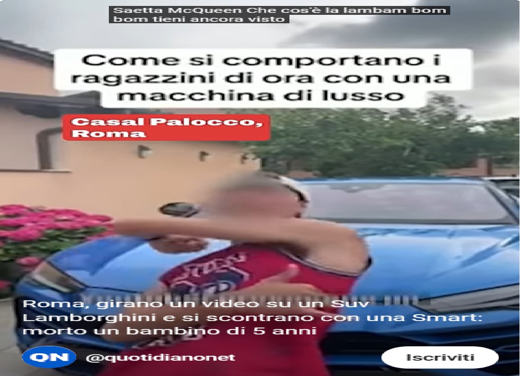 L’incidente è avvenuto in via Archelao di Mileto, a Casal Palocco, attorno alle ore 16 di mercoledì 15 giugno. I cinque youtuber – Matteo Di Pietro, Alessio Ciaffa, Leonardo Golnelli, influencer del gruppo “The Borderline”, con oltre 600mila follower su YouTube – avevano preso a noleggio una Lamborghini per fare un video e poi postarlo sui social. Una sfida di velocità, della durata di 50 ore, che ha avuto un epilogo tragico.
