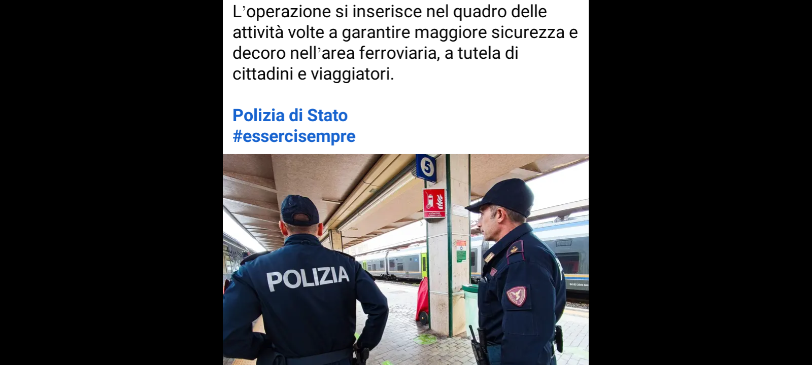 L’operazione si inserisce nel quadro delle attività volte a garantire maggiore sicurezza e decoro nell’area Ferroviaria, a tutela di cittadini e viaggiatori.