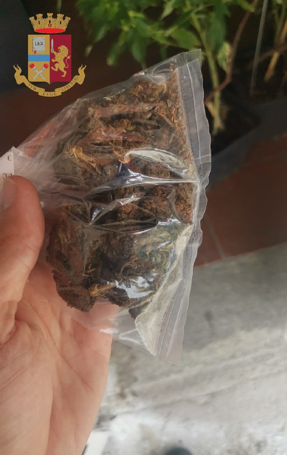 La perquisizione domiciliare a suo carico permetteva inizialmente il rinvenimento di circa 20 grammi di marijuana detenuti all’interno di un portagioie. Veniva poi trovato un maggiore quantitativo della medesima sostanza stupefacente, circa 250 grammi, in una busta in cellophane, occultata all’interno del bidone della spazzatura.