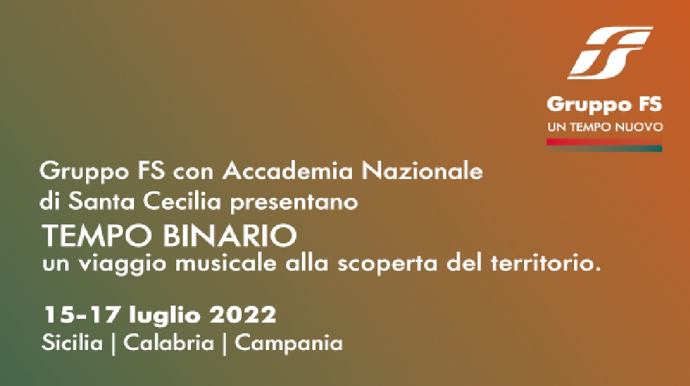 I responsabili del Gruppo FS…, con i componenti dell’Accademia Nazionale di Santa Cecilia, presentano ‘Tempo Binario’ un viaggio musicale alla scoperta del territorio, previsto in Sicilia, Calabria e Campania dal 15 al 17 luglio 2022.