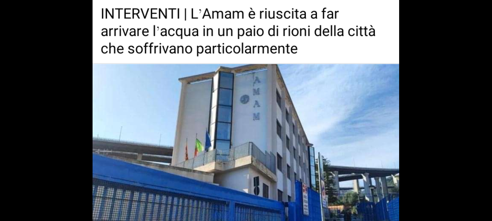 I responsabili dell’Amam…, sono riusciti a far arrivare l’acqua in un paio di rioni della città di Messina che soffrivano particolarmente la carenza di questi mesi, dovuta alla persistente siccità.