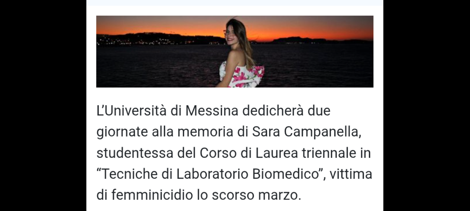 I responsabili dell’Università di Messina dedicano la giornata odierna alla memoria di Sara Campanella, studentessa del Corso di Laurea triennale in “Tecniche di Laboratorio Biomedico”, vittima di femminicidio lo scorso marzo