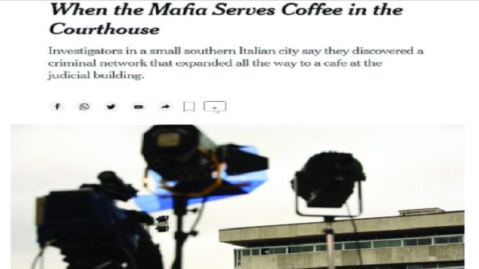 La vasta operazione della Polizia di Stato, coordinata dalla Direzione Distrettuale Antimafia della Procura della Repubblica di Potenza, che ha disarticolato un’associazione criminale di stampo mafioso radicata nel comune di Pignola, non è passata inosservata al New York Times, appunto il più importante giornale del mondo. “When the mafia serves coffee in the courthouse”, tradotto “quando la mafia ti serve il caffè in Tribunale”. L’articolo, in inglese (disponibile cliccando qui) è a firma delle giornaliste italiane Gaia Pianigiani ed Emma Bubola, ed è stato pubblicato questa mattina anche sul sito del giornale.