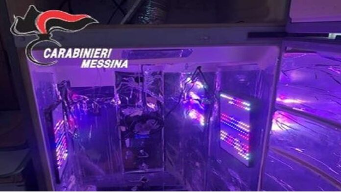 Sono stati pertanto predisposti servizi di osservazione e pedinamento, in particolare a Santa Teresa di Riva nei pressi del domicilio del giovane, laddove è stato accertato un insolito andirivieni di persone, alcune delle quali uscire con circospezione dall’abitazione osservata. Nel tardo pomeriggio di ieri i Carabinieri hanno eseguito una perquisizione domiciliare che ha permesso di trovare una serra artigianale realizzata all’interno di un frigorifero in disuso che era stato adibito per la coltivazione di cannabis ed allestito con una copertura termica, ventilatori, deumidificatore e persino un impianto automatizzato di irrigazione.