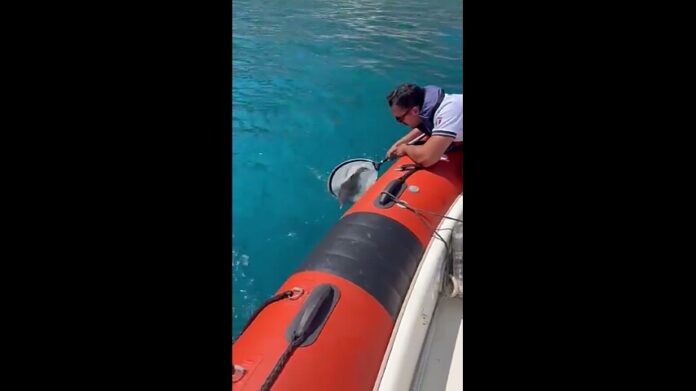 Venivano prontamente allertati ed inviati sul posto i militari della Guardia Costiera di Giardini Naxos che a bordo del gommone di servizio e dopo le indicazioni fornite dal medico veterinario dell’Istituto Zooprofilattico della Sicilia di Palermo, provvedevano a recuperare l’esemplare che appariva disorientato ma in buone condizioni ed a portarlo a circa 2.2 miglia nautiche di distanza dalla costa dove veniva rimesso in acqua ritrovando la libertà.