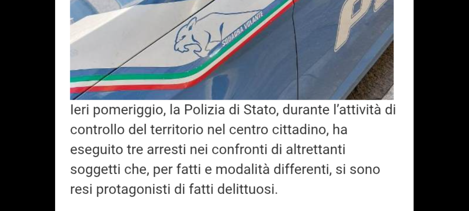 Ieri pomeriggio, gli operatori della Polizia di Stato, durante l’attività di controllo del territorio nel centro cittadino di Reggio Calabria, hanno eseguito tre arresti nei confronti di altrettanti soggetti che, per fatti e modalità differenti, si sono resi protagonisti di fatti delittuosi.