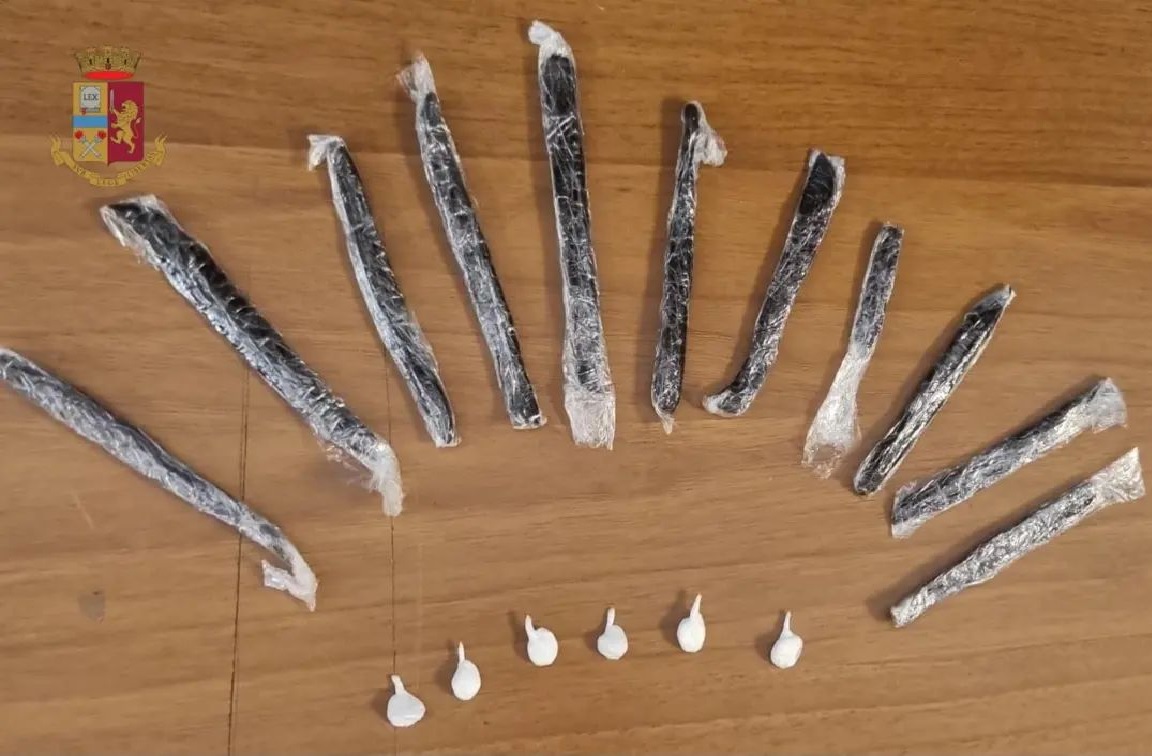 Gli #agenti dell’Ufficio #Prevenzione #Generale, giunti sul posto, hanno individuato lo spacciatore che, alla loro vista, ha tentato la fuga lasciando cadere a terra un pacchetto di sigarette ma è stato bloccato. Inoltre, gli #operatori hanno trovato nel pacchetto 6 involucri di cocaina e 11 stecche di hashish del peso complessivo di circa 34 grammi.