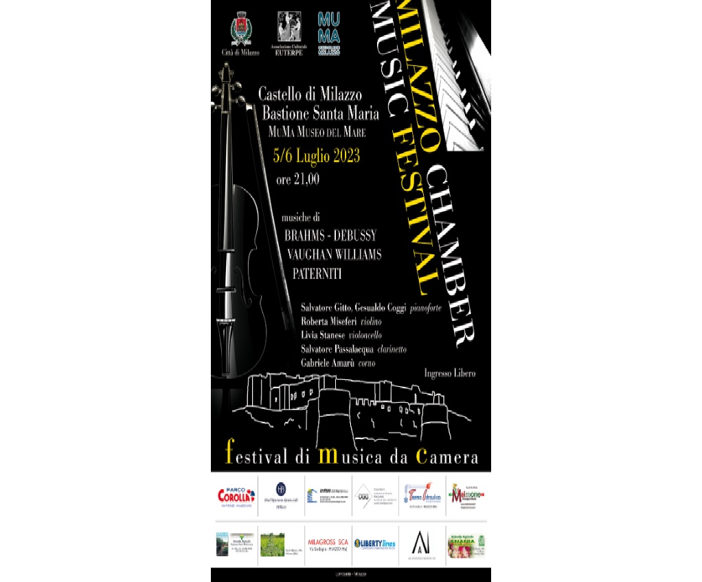 Il 5 e 6 luglio 2023 alle ore 21.00 la grande musica classica da camera ritorna al Castello di Milazzo con la sesta edizione di “Milazzo Chamber Music Festival – Festival di musica da camera”, promosso dall’Associazione Culturale Euterpe, con il patrocinio del Comune di Milazzo e in collaborazione con MuMa – Museo del Mare.