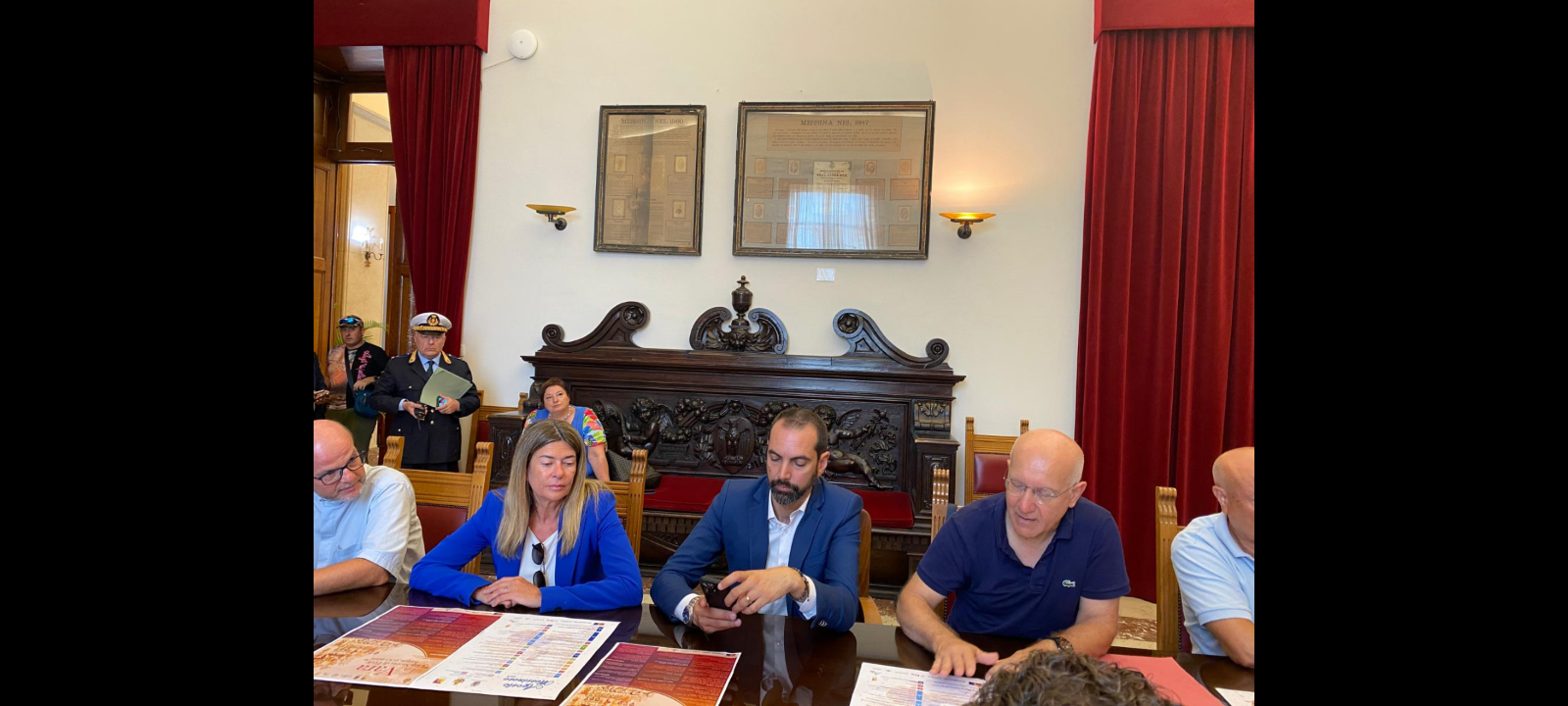 AL TRADIZIONALE APPUNTAMENTO (PER ILLUSTRARE GLI EVENTI CHE ANIMERANNO LA CITTÀ DELLO STRETTO SINO AL 31 AGOSTO PROSSIMO, PRESENTE IL SINDACO FEDERICO BASILE CON GLI ASSESSORI ENZO CARUSO E MASSIMO FINOCCHIARO, HA PARTECIPATO L’ASSESSORA REGIONALE AL TURISMO ELVIRA AMATA); CUI HANNO PRESO PARTE TRA GLI ALTRI IL CAPPELLANO DELLA VARA PADRE ANTONELLO ANGEMI, IL PRESIDENTE DEL GRUPPO STORICO VARA E GIGANTI FRANCESCO FORAMI, E UNA DELEGAZIONE DI CONSIGLIERI COMUNALI DI MESSINA