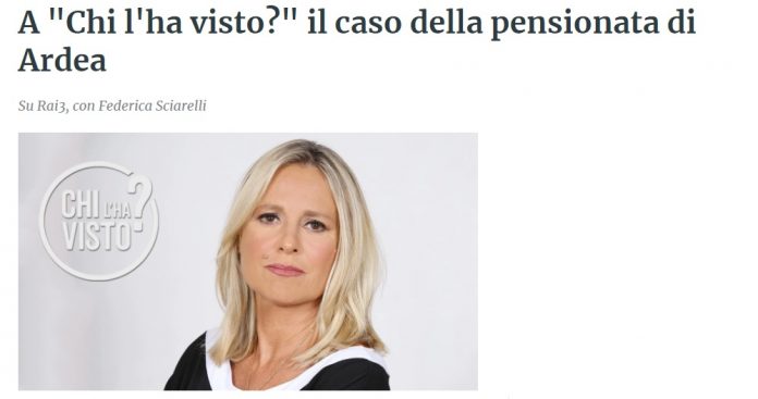 Il caso della pensionata di Ardea (Roma) trovata morta in casa sarà al centro della puntata di “Chi l’ha visto?”, in onda mercoledì 6 ottobre alle 21.20 su Rai3.