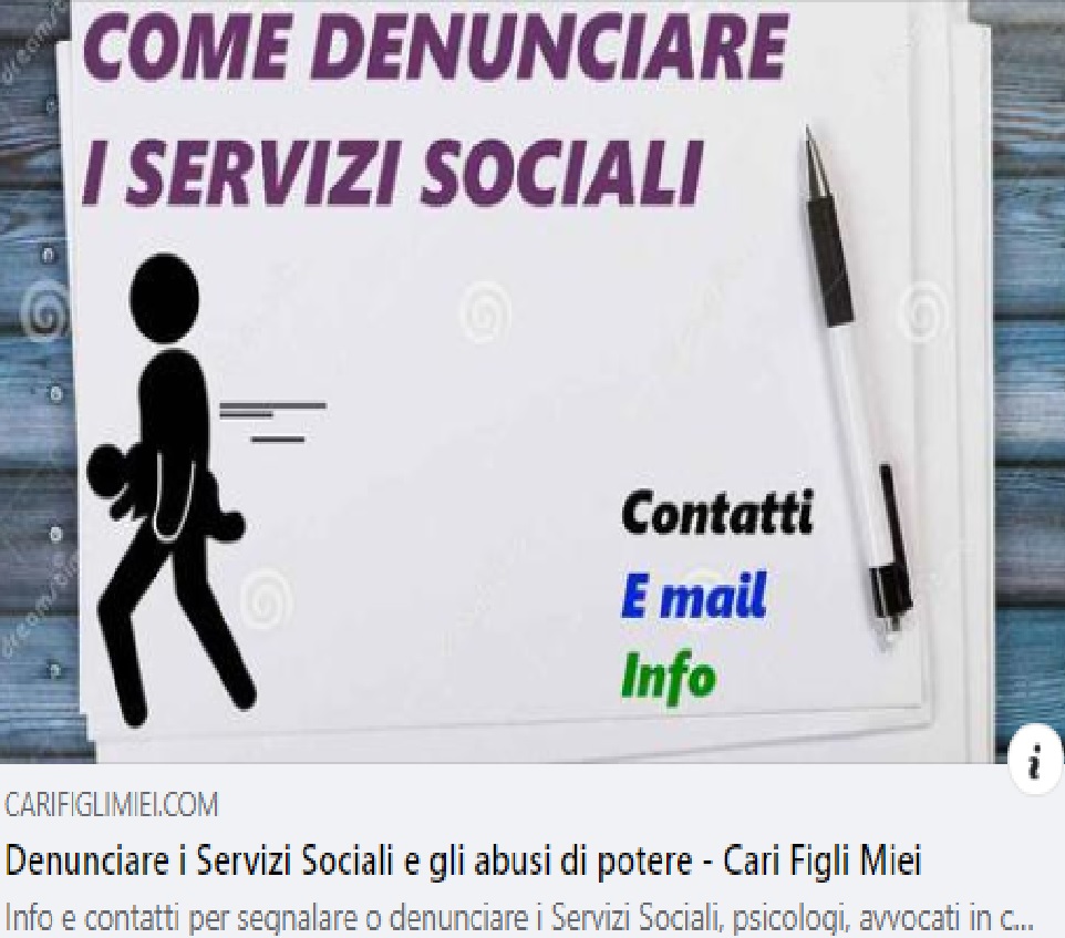 - Come denunciare i Servizi sociali alla Commissione di inchiesta parlamentare – Un’indagine richiesta da una delle Camere è un evento raro. Tuttavia è attualmente in corso la Commissione parlamentare di inchiesta sulle attività connesse alle comunità di tipo familiare che accolgono minori.
