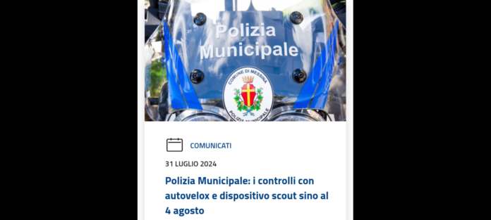 Il Comando del Corpo di Polizia Municipale di Messina nell’ottica della prevenzione dei sinistri stradali rende noto che prosegue il servizio di controllo della velocità con Autovelox lungo gli assi viari cittadini più interessati dal traffico e provvederà inoltre al rilevamento delle infrazioni al Codice della Strada in materia di divieti di sosta con il dispositivo Scout.