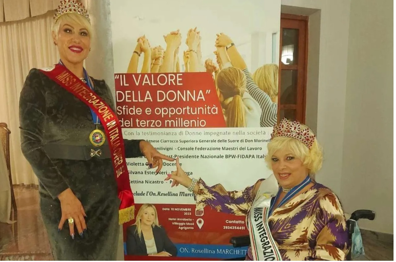 Il Comitato Abbattimento Barriere Architettoniche (CABA) che ha sede a Roma ha nominato come testimonial per l’integrazione e la famiglia, le siciliane Giusy Scirè e Mary Bellomo: le due donne, già Miss Integrazione Special e Miss Integrazione Over, da anni girano l’Italia portando avanti il loro impegno civico nei confronti della disabilità e dell’integrazione.