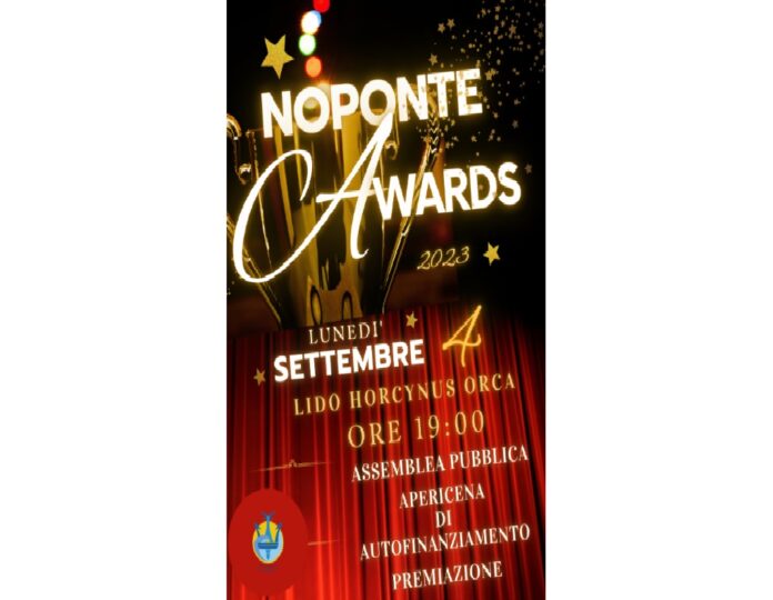 Il comitato Noponte Capo Peloro a chiusura della mobilitazione estiva Noponte promuove la prima edizione del premio Noponte AWARDS 2023, una originale ed ironica manifestazione, che si terrà lunedì 4 settembre dalle ore 20.00 al lido Horcynus Orca in località Torre Faro.