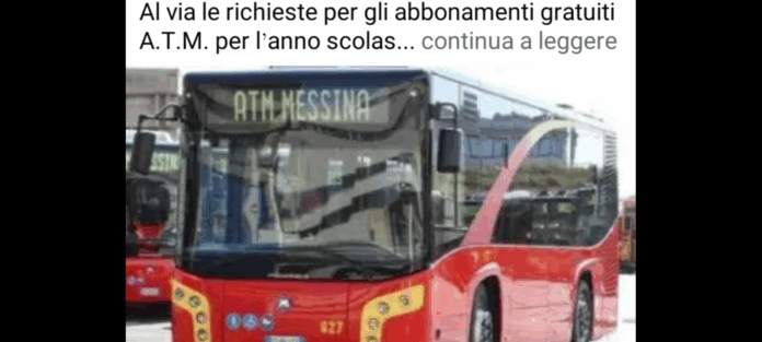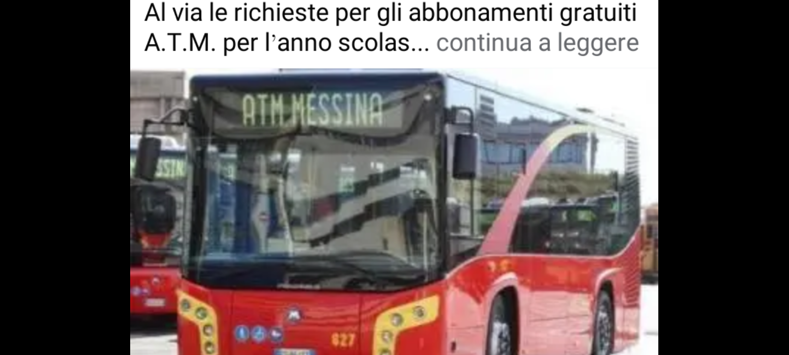 Il Comune di Messina informa che, a partire dalle ore 9.00 di lunedì 15 luglio 2025 e fino alle ore 23.59 di martedì 15 ottobre 2025, sarà possibile inoltrare le richieste per il rilascio dell’abbonamento gratuito A.T.M. per l’anno scolastico 2025/2026, esclusivamente attraverso la piattaforma digitale disponibile al seguente link: (https://sportellotelematico.comune.messina.it/procedure%3Ac_f158%3Aabbonamento.gratuito%3Bdomanda). Non saranno prese in considerazione le domande trasmesse via e-mail, PEC o altri canali.