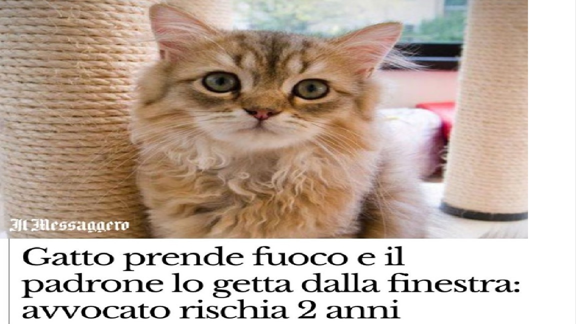 L’uomo è a giudizio davanti al giudice monocratico del tribunale di Latina. Il #gatto, deceduto dopo tre giorni di agonia, era in realtà della compagna dell’avvocato, ormai ex compagna, visto che dopo l’episodio lo ha lasciato.