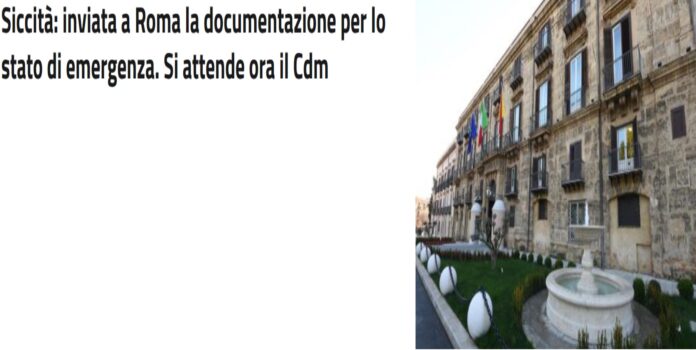Il governo siciliano ha trasmesso a Roma, lo scorso mercoledì 24 aprile, tutta la documentazione necessaria per ottenere la dichiarazione dello stato di emergenza nazionale per la siccità in Sicilia: nel dossier, le soluzioni proposte dalla cabina di regia guidata dal presidente della Regione e coordinata dal capo della Protezione civile regionale per porre freno in tempi rapidi alla crisi dovuta alla mancanza di piogge.