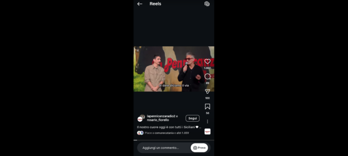 “Il nostro cuore oggi è con tutti i siciliani”! Lo ha detto oggi, sul suo Profilo di www.instagram.com ‘Rosario Fiorello (https://www.instagram.com/rosario_fiorello?igsh=MWhkZTFocm80NWY5cg==)’, il conduttore radiofonico… siciliano, della Rai.