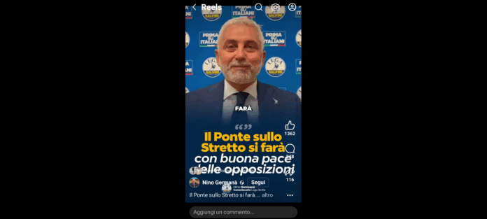 “Il Ponte sullo Stretto si farà”. Lo ha riferito ieri, sulla sua omonima Pagina Facebook ‘Nino Germanà’ il senatore messinese e coordinatore della Lega in Sicilia.