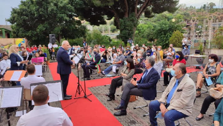 Progetti, importanti, dunque, che sono stati resi noti alle tante autorità e precisamente: Giorgio Stracuzzi (sindaco di Giardini Naxos, che ha effettuato un commosso intervento nel ricordo della mamma insegnante), Ariana Talio (assessore di Giardini – Naxos), Giuseppe Cundari (sindaco di Gaggi, che ha ricordato i valori della scuola), Gennaro Capoluongo (Questore di Messina), Fabio Ettaro (vice questore del commissariato di Taormina), Alfio Polisano (tenente compagnia dei Carabinieri di Taormina), Giuseppe Taibi (sostituto commissario della Polfer di Taormina), Michele Lombardo (comandante della Locamare di Giardini Naxos), Rosario Riccardo Longi (presidente del consiglio di Istituto), Claudia Riggio (direttore dei servizi generali ed amministrativi scolastici), Mario Rapisarda (past preside del comprensivo giardinese). Il momento che si è tenuto nel piazzale della scuola “Luigi Capuana” è stato impreziosito dalle musiche dell’orchestra di “Fiati Etnea”, diretta dai maestri, Carmelo Galizia e Lucio Pappalardo.