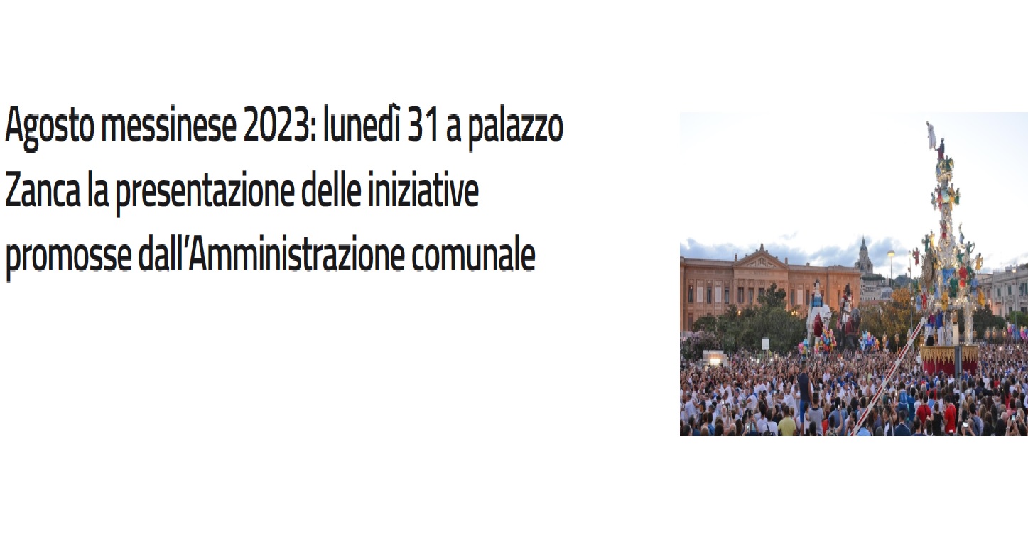 Il programma di eventi musicali e culturali dell’agosto messinese edizione 2023 promossi dall’Amministrazione comunale, sarà illustrato lunedì 31, alle ore 10.30.
