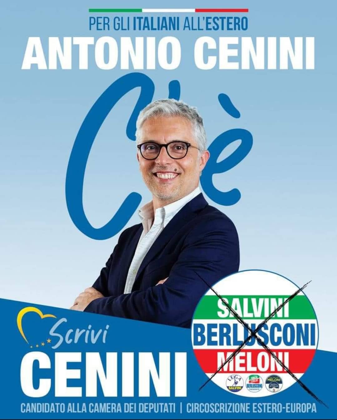 “#antonioceniniministrodegliitalianiallestero – #iovotoantoniocenini”.