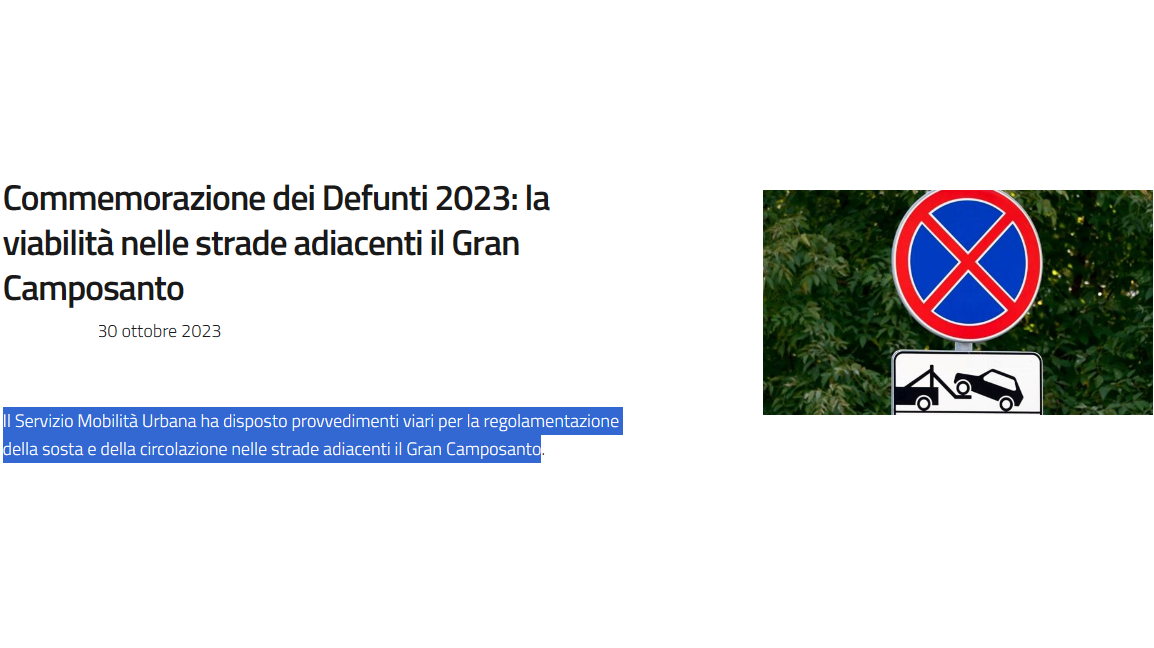Il Servizio Mobilità Urbana…, ha disposto provvedimenti viari per la regolamentazione della sosta e della circolazione nelle strade adiacenti il Gran Camposanto