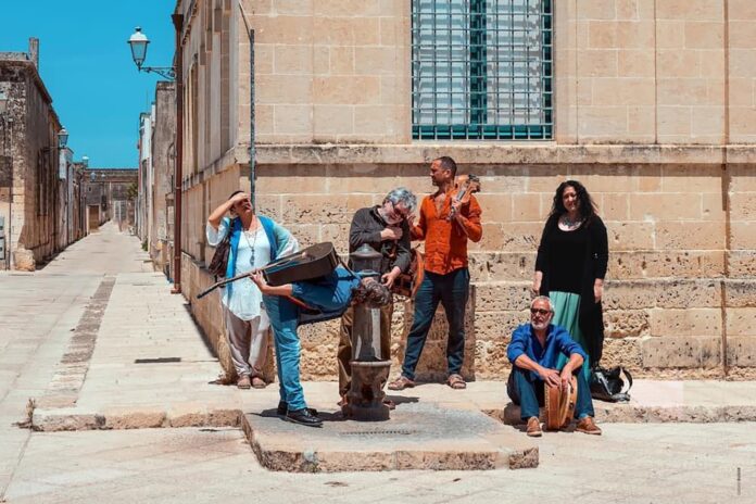 Dal 1993 grandi padri della musica salentina, gli Officina Zoè sono pulsazione pura per la danza e per la trance, ambasciatori della pizzica nel mondo. L’elemento di forza del gruppo è la ricerca costante della trance e della ciclicità insita nel ritmo arcano dei tamburelli e intrisa di minimalismo nella musica e nel canto… la loro musica racconta il mondo di oggi, ma è profondamente ancorata e rispettosa della filologia e del linguaggio della tradizione. Solo in questo modo è stato possibile ridare alla musica popolare del Salento, alla Pizzica, il suo ruolo nel panorama della world music; una tradizione viva, come vivo è il sangue che circola nelle vene. La proficua collaborazione con il regista anglosalentino Edoardo Winspeare ha riguardato tre film: “Pizzicata” (ambientato nel Salento durante la seconda guerra mondiale), “Sangue Vivo”; “Il miracolo” (per il quale il gruppo ha curato la colonna sonora). La formazione: Cinzia Marzo voce, tamburello, flauiti etnici, castagnette; Lamberto Probo tamburi a cornice, tammorra, udu, cucchiai, voce; Donatello Pisanello organetti diatonici, mandola, armonica a bocca; Giorgio Doveri violino, mandola, zither, cupa cupa; Silvia Gallone tamburi a cornice, tammorra, maranzano, voce; Luigi Panico chitarra, mandola, armonica a bocca, nay; Sara Colonna danza.