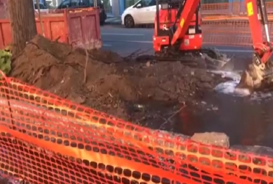 Imprevisto stamattina durante i lavori per la realizzazione di un attraversamento pedonale in via Garibaldi: quasi all’altezza del teatro Vittorio Emanuele, a Messina, durante gli scavi con un mezzo meccanico, si è rotto un tubo dell’acqua e subito si è formata un’enorme pozzanghera su entrambe le carreggiate. C’è voluto l’intervento dei tecnici dell’Amam che, una volta chiuso il flusso idrico, ora dovranno provvedere alla riparazione.