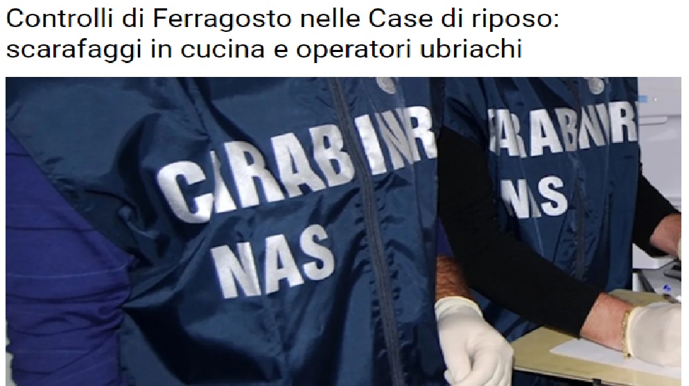 Negli ultimi giorni, i Carabinieri NAS hanno ispezionato, sull’intero territorio nazionale, 351 strutture, tra residenze assistenziali assistite (R.S.A.), case di riposo, comunità alloggio e case famiglia, individuandone 70 irregolari, pari al 20% degli obiettivi controllati, contestando 127 sanzioni penali e amministrative, per oltre 40 mila euro.