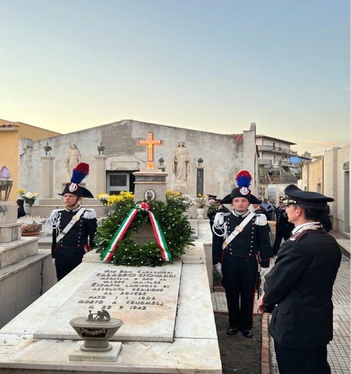 In concomitanza con la ricorrenza dei defunti, il 2 novembre appena trascorso si è tenuta, a Giardini Naxos (ME), una cerimonia commemorativa per celebrare l’80° anniversario della morte del Vice Brigadiere dei Carabinieri Giovanni Calabrò, decorato di Medaglia D’Oro al Valor Militare, caduto il 22 settembre 1942 in Slovenia. Giovanni Calabrò nacque a Castelmola (ME) l’11 gennaio 1906; arruolatosi quale Allievo Carabiniere Reale, il 6 gennaio 1926 venne destinato alla Legione di Palermo. Promosso Vice Brigadiere il 3 novembre 1939, nel giugno 1940 venne destinato all’ 85^ Sezione Motorizzata, con cui prese parte alle operazioni di guerra sul fronte francese. Trasferito al XIV Battaglione Mobilitato, operò sul fronte balcanico, ove prese parte alla controguerriglia.