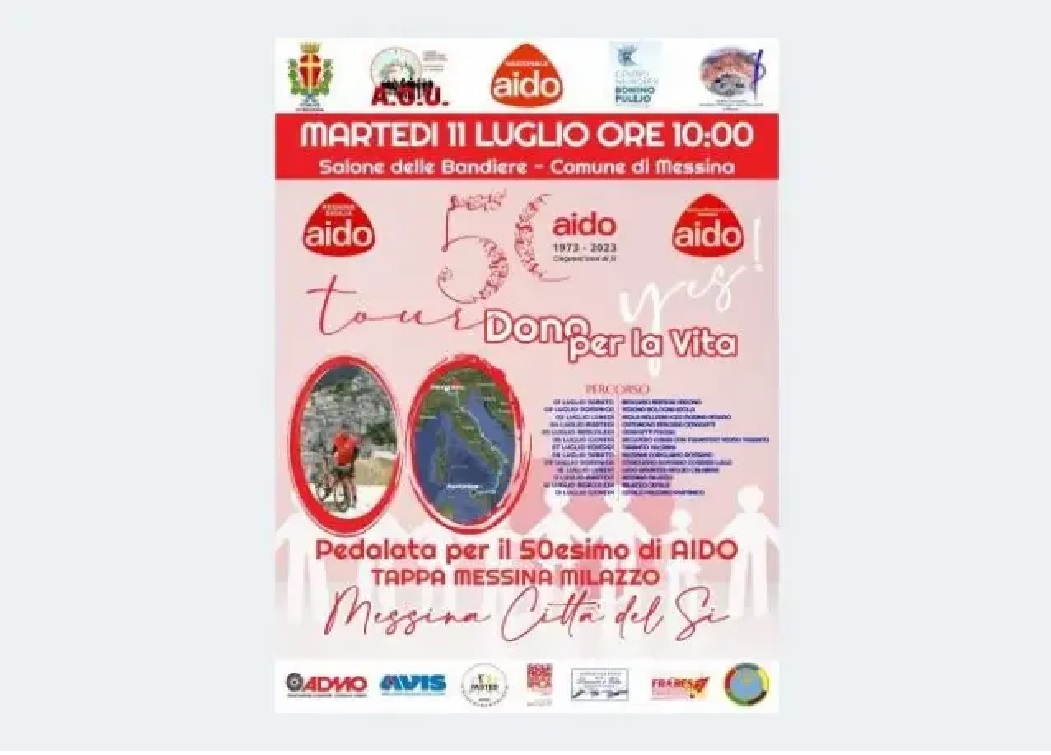 In occasione del 50simo anniversario della fondazione di AIDO (Associazione Italiana Donazione Organi Tessuti e Cellule), domani, martedì 11, alle ore 10, il sindaco Federico Basile e l’assessore alle Politiche Sociali e della Salute Alessandra Calafiore riceveranno nel salone delle Bandiere a palazzo Zanca Michall Speciale, ciclista amatoriale e socio AIDO di Partinico, il cui padre è morto in attesa di un trapianto di rene. Presente anche il presidente della sezione provinciale AIDO Messina Agostino Mallamace.