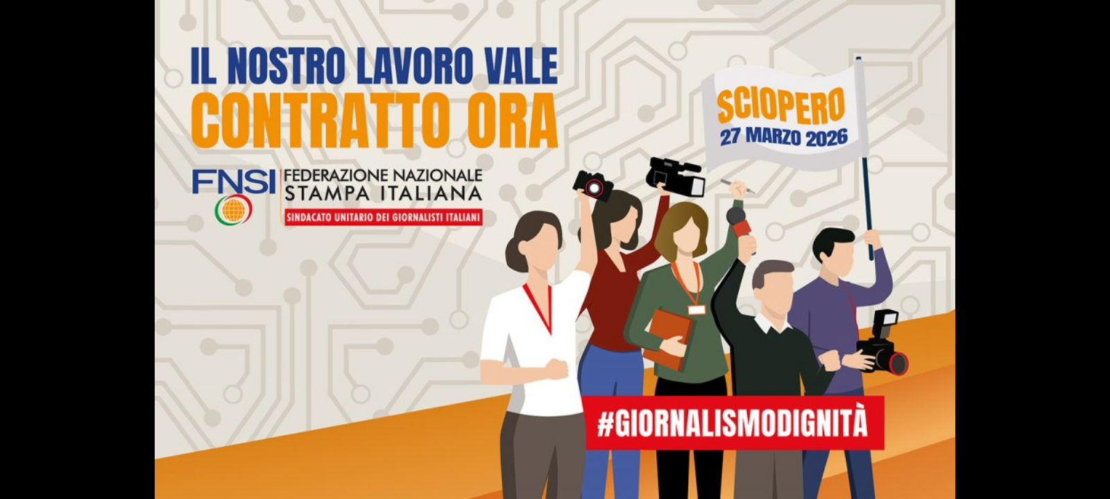In occasione dello sciopero per il rinnovo del contratto nazionale di lavoro Fieg-Fnsi, il sindacato ha chiesto, attraverso i Cdr, alle testate giornalistiche, cartacee e online, alle agenzie di stampa e alle emittenti radiotelevisive nazionali di pubblicare sull’edizione di venerdì 27 marzo 2026 o di leggere, sempre venerdì 27, il COMUNICATO SINDACALE (ex articolo 34 del Cnlg) riportato anche di seguito