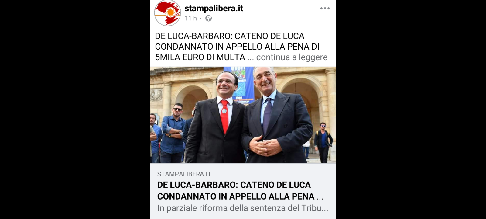 “In parziale riforma della sentenza del Tribunale di Reggio Calabria del 10 ottobre 2023, la Corte d’appello di Reggio Calabria (presidente Elisabetta Palumbo) ha condannato Cateno De Luca alla pena di 5.750 euro di multa, pena sospesa”. Lo si apprende, da un articolo pubblicato nelle ore scorse su… www.stampalibera.it!