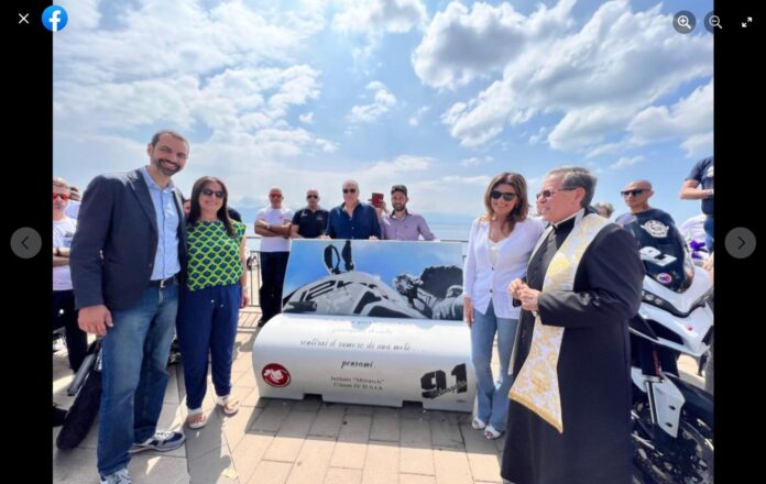 Basile ha aggiunto e concluso: «la panchina letteraria riporta una frase… “Seduta su questa panchina, guardano il cielo, sentirai il rumore di una moto… pensami”. La frase è stata scelta tra i 34 manifesti realizzati dagli studenti nell’ambito del contest “Un Manifesto per la Vita”. Ciao Milena»!