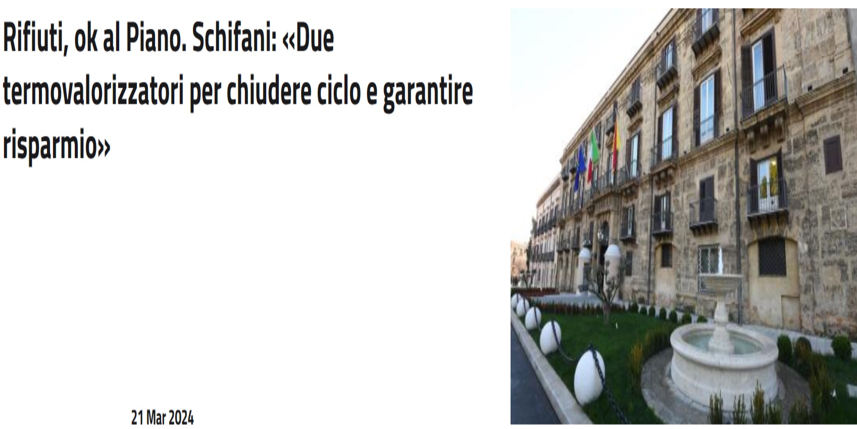 «Il provvedimento adottato oggi in giunta – afferma il presidente della Regione Siciliana, Renato Schifani – è il segnale tangibile dell’accelerazione che il mio governo intende dare alla soluzione del problema dei rifiuti in Sicilia. Un mese fa sono stato nominato commissario straordinario con decreto del presidente del Consiglio dei ministri e subito mi sono messo al lavoro su questo fronte. Il Piano prevede anche la realizzazione di due termovalorizzatori che avranno un costo presuntivo di 800 milioni di euro: saranno impianti costruiti con risorse del Fondo per lo sviluppo e la coesione 2021/2027 e la gestione verrà affidata a operatori di mercato selezionati con procedura ad evidenza pubblica. Questo significa che l’investimento a carico degli utenti e il suo ammortamento è nullo. Nello stesso tempo, garantiranno risparmi nello smaltimento dei rifiuti a carico dei Comuni e una produzione di energia che comporterà ricavi: tutto ciò si tradurrà concretamente nella riduzione della Tari per i cittadini. Vogliamo cambiare approccio rispetto al tema: i rifiuti sono una risorsa che va valorizzata e trasformata in energia per realizzare così, e per la prima volta, una vera economia di scala. Senza perdere di vista, comunque – evidenzia Schifani -, il raggiungimento del target fissato dalla direttiva 2018/851 dell’Unione europea che prevede al 2035 una percentuale di recupero e riciclaggio, legati all’incremento della raccolta differenziata, pari ad almeno il 65%. Un obiettivo che vogliamo raggiungere, nel più breve tempo possibile, attraverso campagne mirate di sensibilizzazione, miglioramento dell’impiantistica esistente, controllo del territorio e contestuali sanzioni».