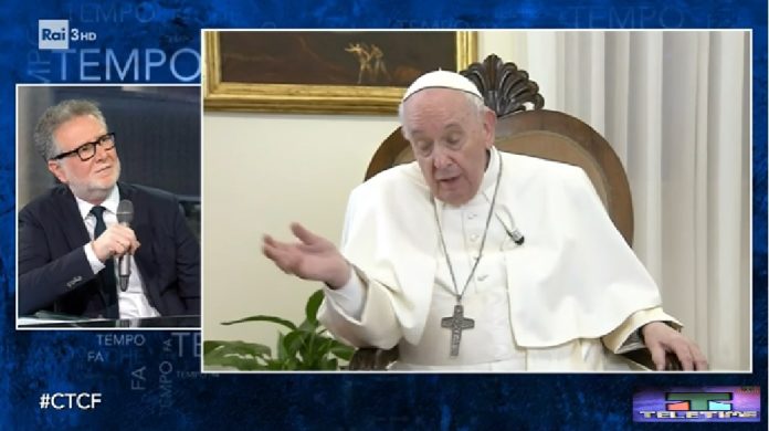 Bergoglio fa la sua omelia in collegamento, seduto su seggiolone totale, in un salone nudo, alla megadirettore totale di Fantozzi, ma che da solo accoglierebbe tutti i migranti di Lampedusa; e infatti di questi si parla. Fazio, tre milioni a stagione, e manco gli bastano, lancia la palla dei bambini che muoiono di fame, di freddo, e ci vuole proprio un cinismo piddino, dai, su, e Bergoglio la batte al volo e parte di repertorio: le guerre, le armi, le ingiustizie, “non voglio fare il tragico ma è la verità”. Ex cathedra, insomma.