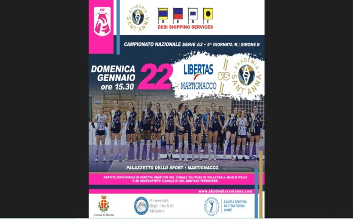 La Desi Shipping Akademia Messina non ha ancora finito di esultare dopo il convincente ed importante successo casalingo di mercoledi contro Perugia che, per il terzo turno in 7 giorni, vola in Friuli ed affronta il match numero 5 del girone di ritorno contro la Itas Ceccarelli Martignacco, incontro in programma oggi, domenica 22 gennaio, con inizio alle ore 15.30.