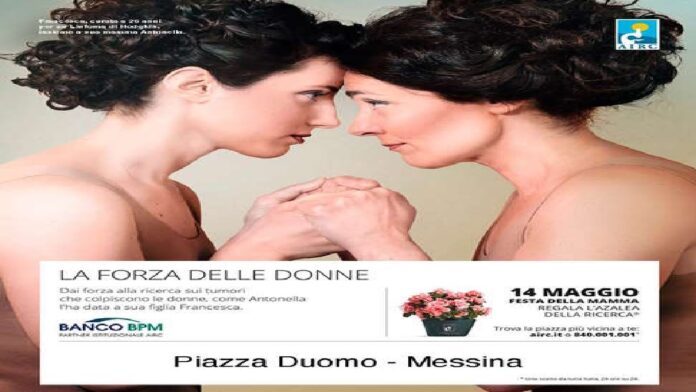 “La forza delle donne” è il claim di questa edizione e il messaggio che Airc vuole trasmettere per tutto il mese di maggio: “La Forza delle Donne” è la forza che parte dalla ricerca, arriva alle pazienti e si moltiplica grazie al sostegno delle persone che sono loro vicine e se ne prendono cura ogni giorno. Domenica 14 maggio torna la Festa della Mamma e con essa l’Azalea della Ricerca…, sono 20.000 i volontari che nelle piazze di tutta Italia (a Messina l’appuntamento è in Piazza Duomo) distribuiranno quella che in questi ultimi quarant’anni (la prima colorata invasione delle piazze risale al 1984) si è sempre più trasformata da semplice pianta ornamentale a vera e propria icona; una testimonianza d’amore e di solidarietà per le donne che lottano contro un cancro e per i ricercatori impegnati a trovare diagnosi sempre più precoci e terapie più efficaci.