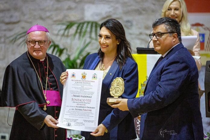 La messinese avv. Silvana Paratore è stata insignita ad Anagni del XXI Premio Nazionale ‘Bonifacio VIII’ per la cultura della pace: riconoscimento assegnato a personalità nazionali ed internazionali che si sono distinte per professionalità, impegno e promozione della dignità della persona umana e per l’essere stati testimoni validi dei valori della Fede, della Speranza e dell’Amore per il prossimo