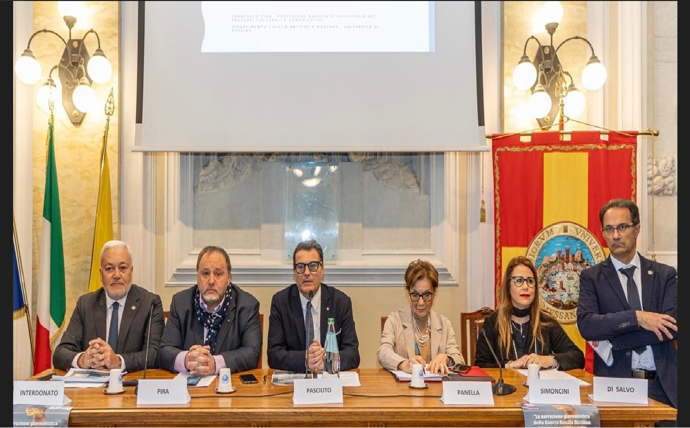 LA DIFFICOLTÀ DEGLI INVIATI SUL TEATRO DELLA GUERRA CHE NON RIESCO SEMPRE A SCRIVERE LA VERITÀ, L’UTILIZZO DELLO STORYTELLING NELLE ESPOSIZIONI GIORNALISTICHE E LE STRATEGIE UTILIZZATE NELLA GUERRA... IL SEMINARIO ATTRAVERSO IL COINVOLGIMENTO DI ESPERTI HA FORNITO AI 120 GIORNALISTI PRESENTI UNO SPACCATO (SOCIOLOGICO, GIURIDICO E DI STRATEGIE MILITARI LEGATO ALLA COMUNICAZIONE) UTILE PER COMPRENDERE QUANTO STA AVVENENDO: L’EVENTO È STATO MODERATO DA ROSARIO PASCIUTO, GIORNALISTA DELLA RTP TV DI MESSINA... I LAVORI SONO STATI INTRODOTTI DA LAURA SIMONCINI, PRESIDENTE UCSI MESSINA, LA QUALE HA RINGRAZIATO I RELATORI, I GIORNALISTI INTERVENUTI E IL MAGNIFICO RETTORE SALVATORE CUZZOCREA, PER L’OSPITALITÀ, INOLTRE HA RICORDATO IL CENTENARIO DELLA PROCLAMAZIONE DI SAN FRANCESCO DI SALES PATRONO DEI GIORNALISTI