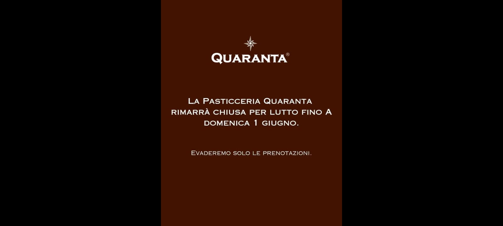 Così si conclude il testo diffuso: “Evaderemo esclusivamente le prenotazioni già prese. Vi ringraziamo per la vicinanza mostrataci in queste difficili ore”.
