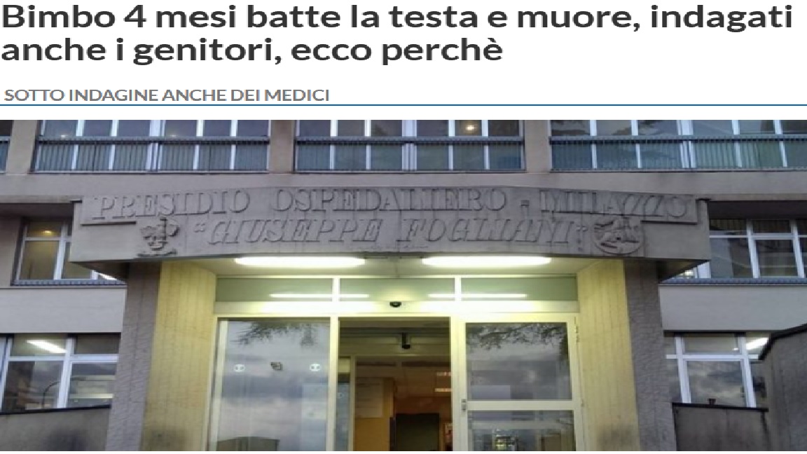 Arrivato a casa le condizioni del bambino si erano aggravate ed era stato portato di nuovo al Fogliani e poi al Policlinico dove con una risonanza era stata riscontrata un’emorragia celebrale. Il piccolo poi era stato operato ma i sanitari non sono riusciti a salvarlo. Le iscrizioni al registro degli indagati è un atto dovuto per permettere di potere eseguire l’autopsia come incidente probatorio.