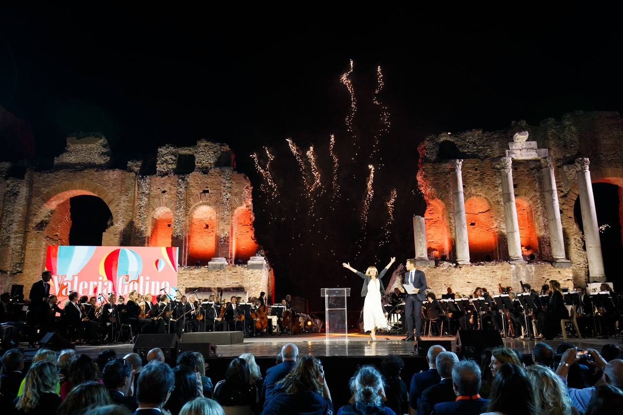 Così prosegue il testo diffuso: “il Teatro Antico di Taormina ha ospitato la cerimonia della XIII^ edizione di #Taobuk Festival See Sicily. A tutelare l’eredità di questo luogo millenario è il Parco archeologico Naxos Taormina, diretto da Gabriella Tigano che ha consegnato il #Taobuk Award alla direttrice d’orchestra Gianna Fratta”.