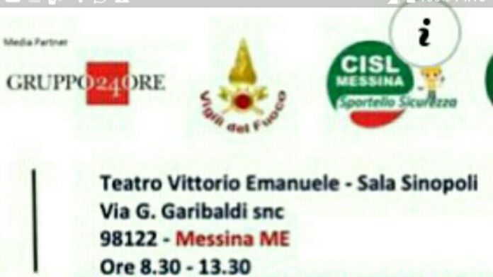 Un seminario che vedrà la presenza, tra gli altri, del prefetto Cosima Di Stani, del Presidente dell’Ente Teatro Orazio Miloro, del Segretario Generale USR CISL Sicilia Sebastiano Cappuccio, del Segretario Generale CISL Messina Antonino Alibrandi, del Segretario Generale FNS CISL Massimo Vespia, del Segretario Nazionale AiFOS Francesco Naviglio, del Direttore INPS Messina Gaetano Minutoli, del Direttore INAIL Messina Mariagiovanna Costanza.