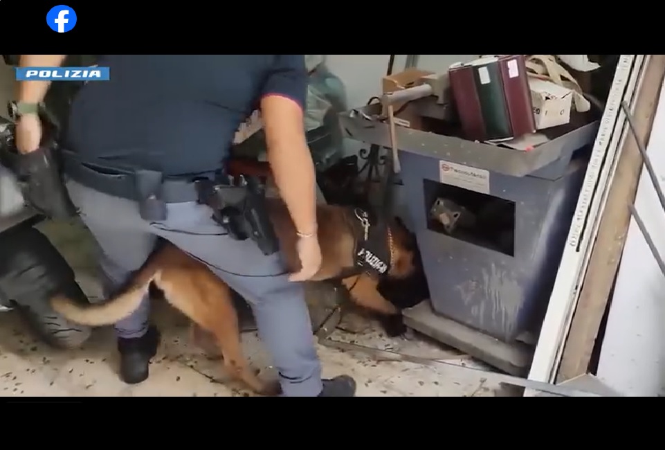 Infatti, nel garage di pertinenza dell’abitazione i cani poliziotto “Cheyenne” e “King”, entrambi addestrati in ricerca stupefacenti, hanno fiutato la droga. Non appena gli agenti hanno fatto ingresso in garage i cani si sono diretti subito verso una scaffalatura dove era presente una busta contenente l’hashish. In un altro punto, invece, è stata rinvenuta altra sostanza stupefacente del tipo marijuana. I poliziotti hanno sequestrato anche dei coltelli utilizzati per suddividere in dosi la sostanza per poi venderla. Al termine della perquisizione sono stati sequestrati complessivamente oltre 2.2 chilogrammi di droga sottoposta ad analisi da parte del Gabinetto Provinciale di Polizia Scientifica.