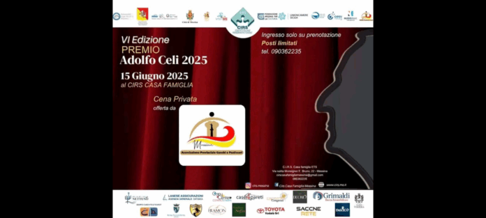 “La VI^ Edizione del Premio Adolfo Celi 2025: si terrà in ore serali, il 15 Giugno 2025… presso la sede del Cirs (Comitato italiano reinserimento sociale) Casa Famiglia ETS di Messina”. Lo hanno riferito nei giorni scorsi, sulla loro omonima Pagina Facebook, i responsabili del prefato Cirs, presieduto dalla dottoressa Maria Celeste Celi.