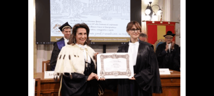 Con il conferimento del titolo ad honorem, l’Ateneo ha voluto valorizzare il contributo che l’artista ha saputo offrire al dibattito civile e culturale del Paese. In particolare, con il film “C’è ancora domani”, Paola Cortellesi ha affrontato con grande sensibilità temi centrali della storia repubblicana, mettendo in luce il rapporto tra diritto, società ed emancipazione femminile. Con il suo lavoro, inoltre, dimostra come il linguaggio cinematografico possa incidere sulla coscienza collettiva più di quanto riescano talvolta altri strumenti di divulgazione, parlando alle nuove generazioni con una forza empatica e una chiarezza narrativa capaci di stimolare una riflessione su temi giuridici complessi.