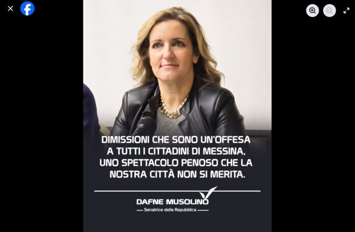 “Le dimissioni del sindaco Federico Basile sono la certificazione di un fallimento politico e umano eterodiretto: De Luca prima umilia Basile, costringendolo alle dimissioni anticipate con una motivazione che lo stesso sindaco non riesce a difendere, e poi lo deride pubblicamente, fingendo di non sapere nulla… questo è il trattamento che De Luca riserva a Messina… umiliazione e derisione, trattando i cittadini come sciocchi disposti a credere alle baggianate raccontate in conferenza stampa”. Lo ha riferito ieri, in un Post pubblicato sulla sua omonima Pagina Facebook ‘Dafne Musolino’ l’avvocatessa messinese e senatrice del ‘Gruppo di Italia Viva’ presso Palazzo Madama a Roma.